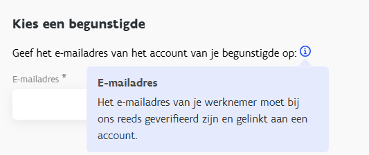 Als het e-mailadres niet gekend is, moet de werknemer nog een account aanmaken en verifiëren.