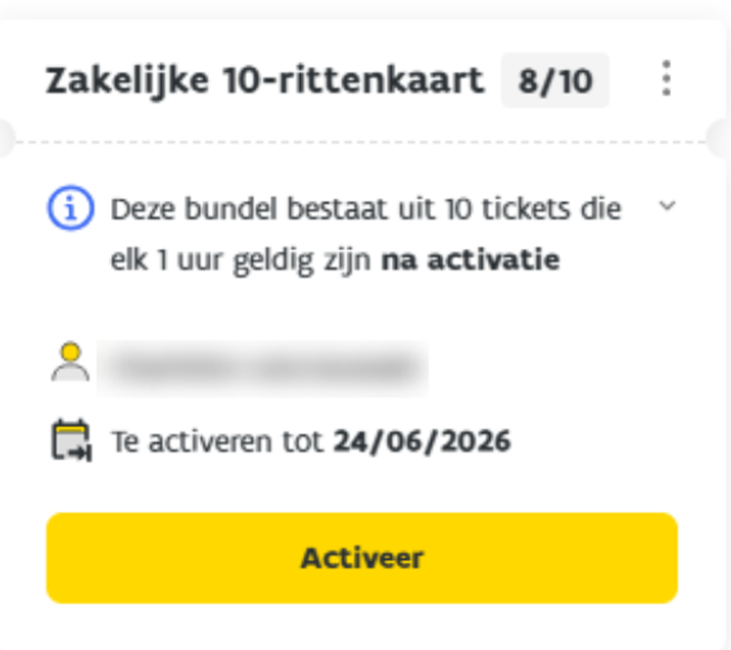 - De zakelijke rittenkaart en/of 10-rittenprobeerkaart is zichtbaar en klaar voor gebruik in de “Ticket zone”.